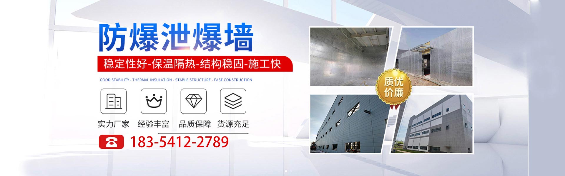 • 抗爆墻 耐火阻燃 可施工 輕質(zhì)高強